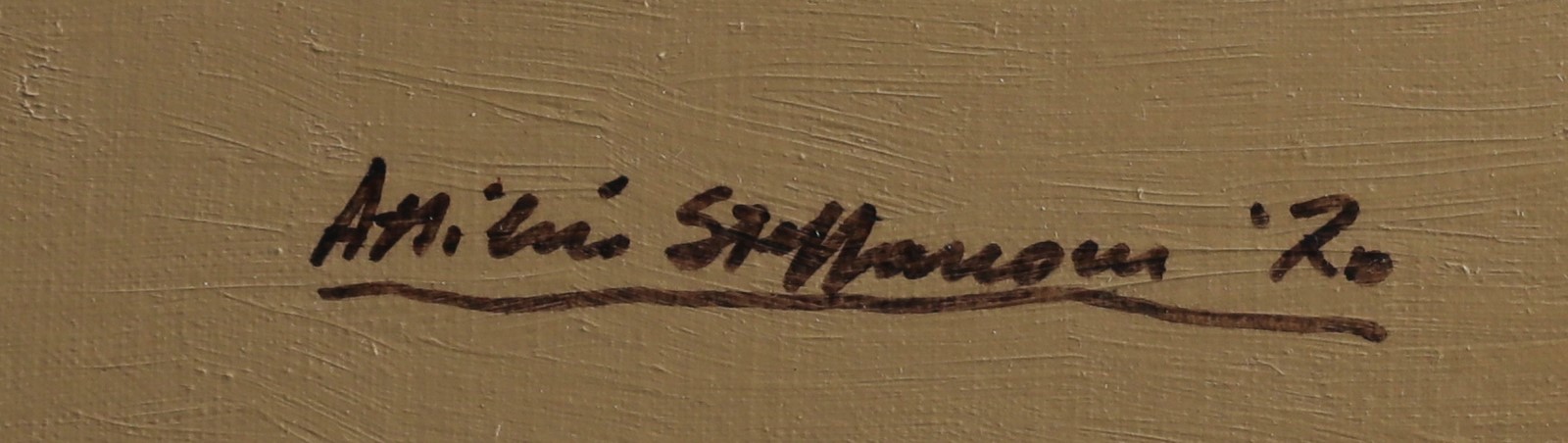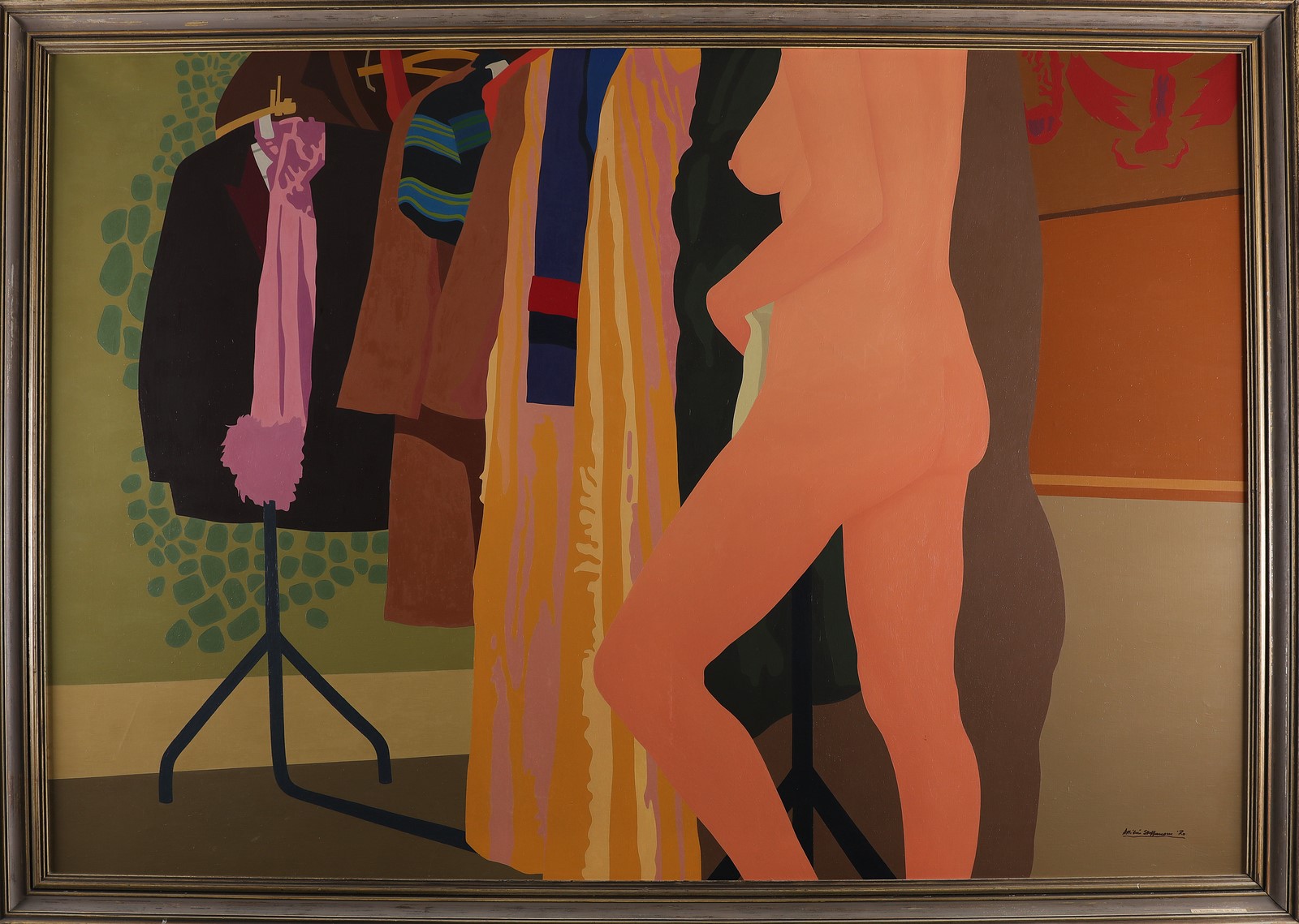 ATTILIO STEFFANONI (n. 1938) Vestibolo. . 1970. Olio su tela . Cm 140,00 x 100,00. Firma e anno in basso a destra. Al retro titolo, firma e anno. Cartiglio descrittivo a cura della Galerie Tardy, Enschede. . Cornice presente