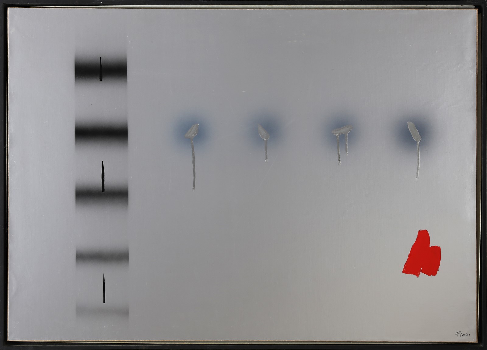FINZI ENNIO (n. 1931) Untitled. Mixed media on paper on canvas. Cm 100,00 x 70,00. Signature lower right. Artist's authenticity certificate on photo. Cornice presente