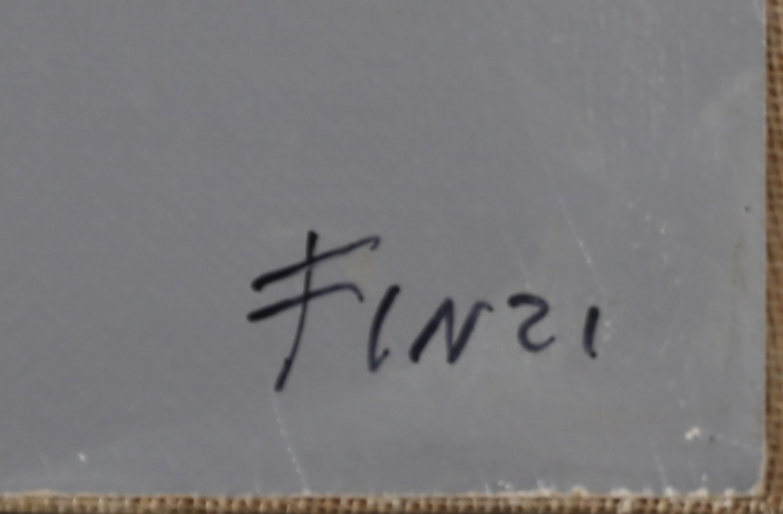 FINZI ENNIO (n. 1931) Senza titolo. . Tecnica mista su carta su tela. Cm 100,00 x 70,00. Firma in basso a destra. Autentica dell'artista su fotografia. Cornice presente