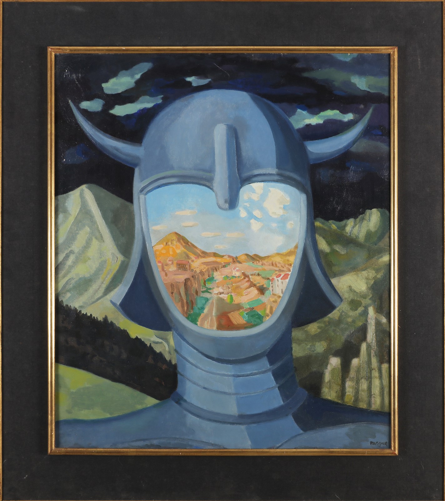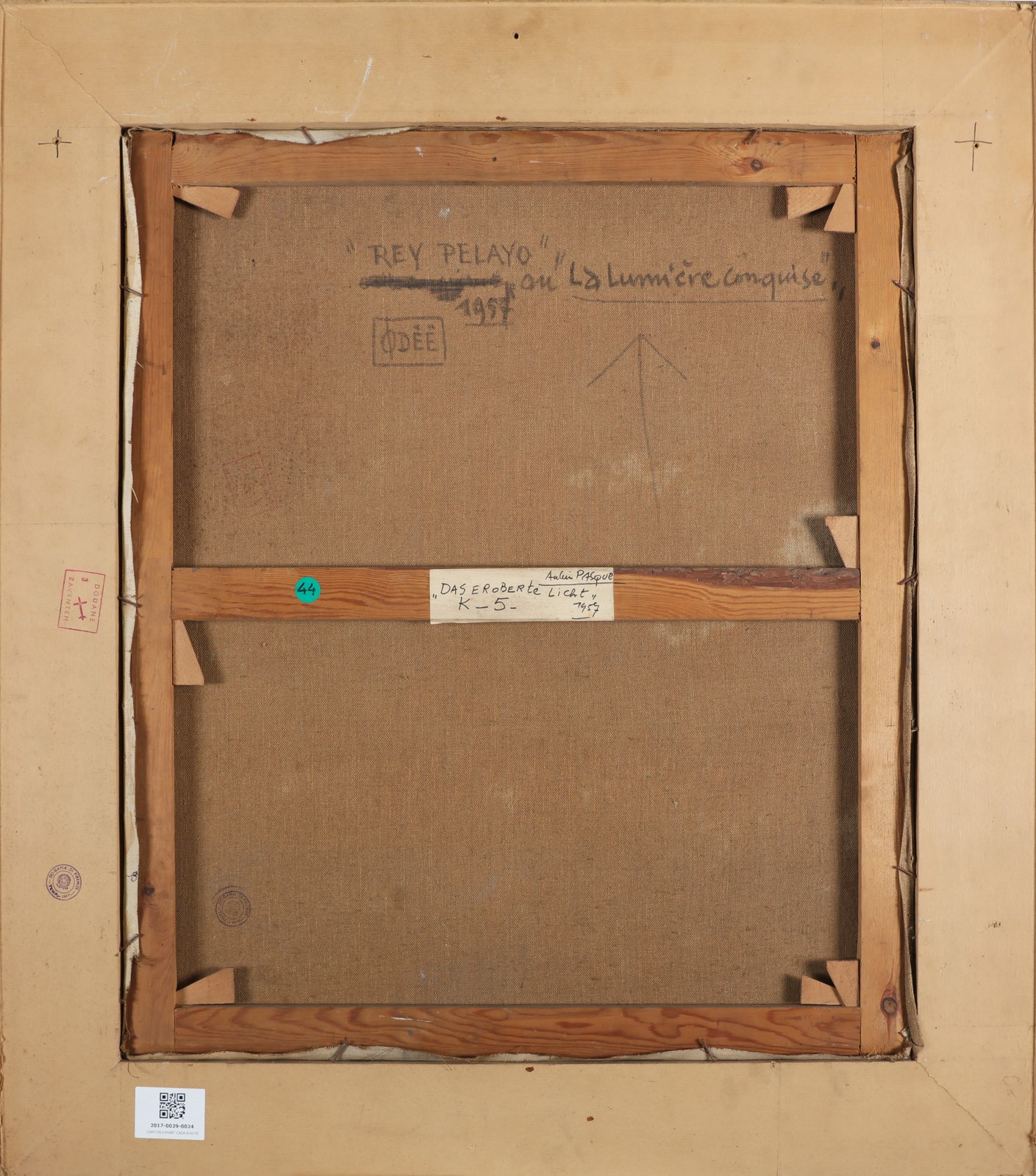 PASQUE AUBIN (1903 - 1981) Rey Pelaio. 1957. Oil on canvas . Cm 60,00 x 70,00. Signature lower right. At the back title and year.. Cornice presente