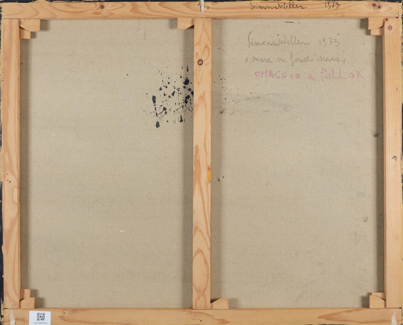 WELLER SIMONA (n. 1940) Mare su fondo nero, omaggio a Pollock. . 1973. Olio su tela . Cm 80,00 x 100,00. Al retro titolo, firma e anno.