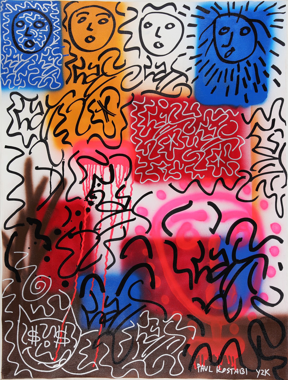 KOSTABI PAUL INDREK (n. 1962) Similar Patterns. . 2000. Olio su tela . Cm 70,00 x 100,00. Firma e anno in basso a destra. Al retro titolo, firma e anno. Certificato di autenticità a cura di Follin Gallery, New York.