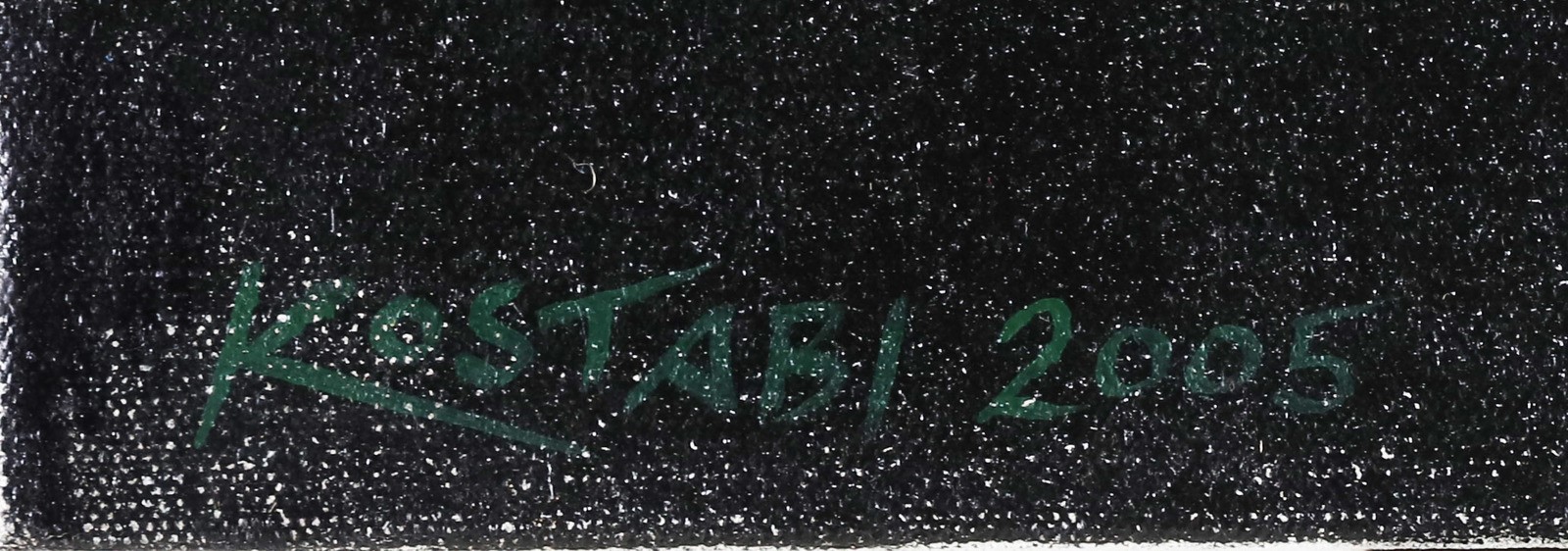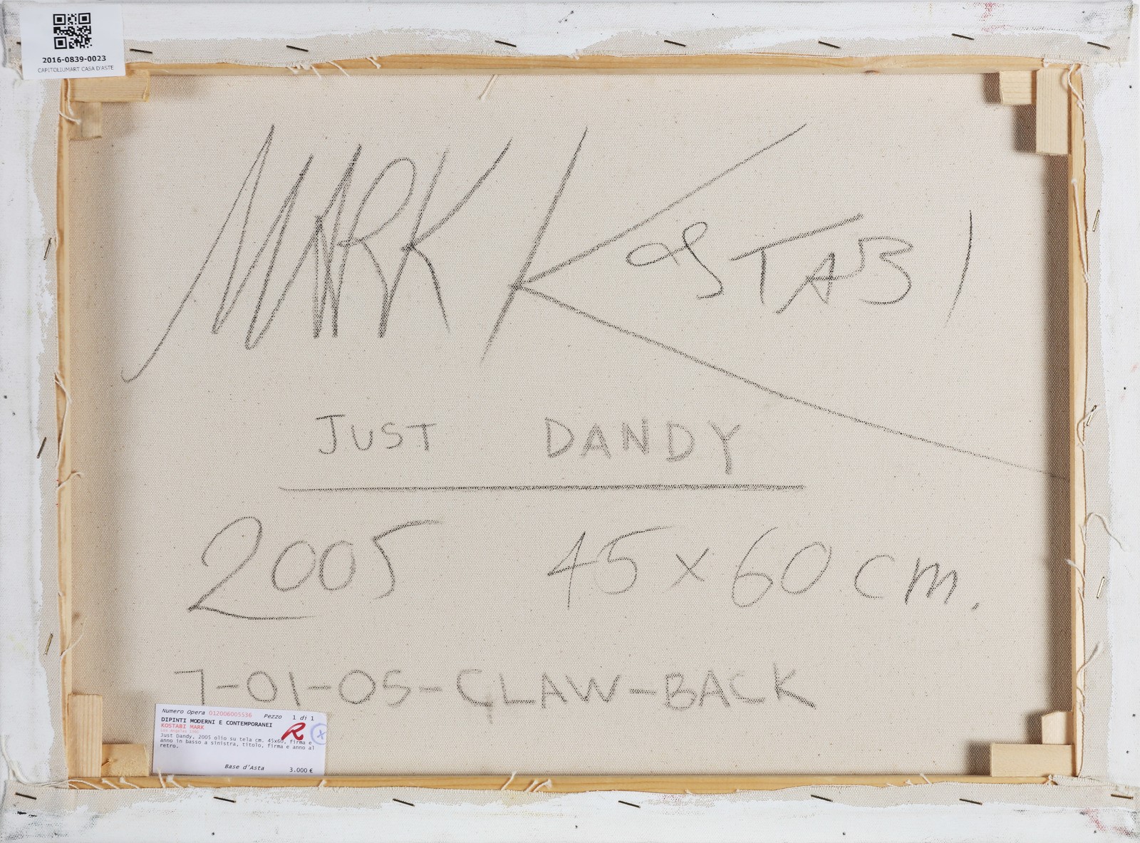 KOSTABI MARK (n. 1960) Just dandy. 2005. Oil on canvas . Cm 45,00 x 60,00. Signature and year on the bottom left. At the back title, signature and year. Artist's authenticity certificate on photo. Publications: Gary Indiana, Mark Kostabi, The only show on earth, Soave Gallery, 2006, p. 63.