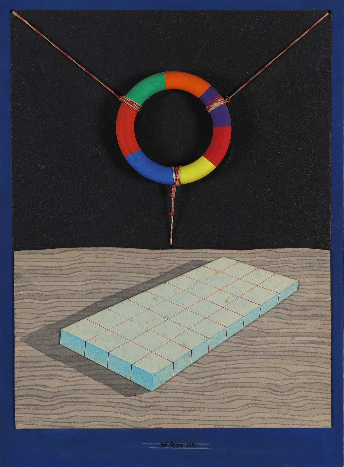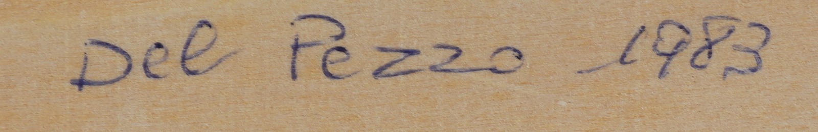 DEL PEZZO LUCIO (n. 1933) Untitled. 1983. Mixed nomes on board. Cm 23,50 x 33,00. Signed and dated lower center.. Cornice presente
