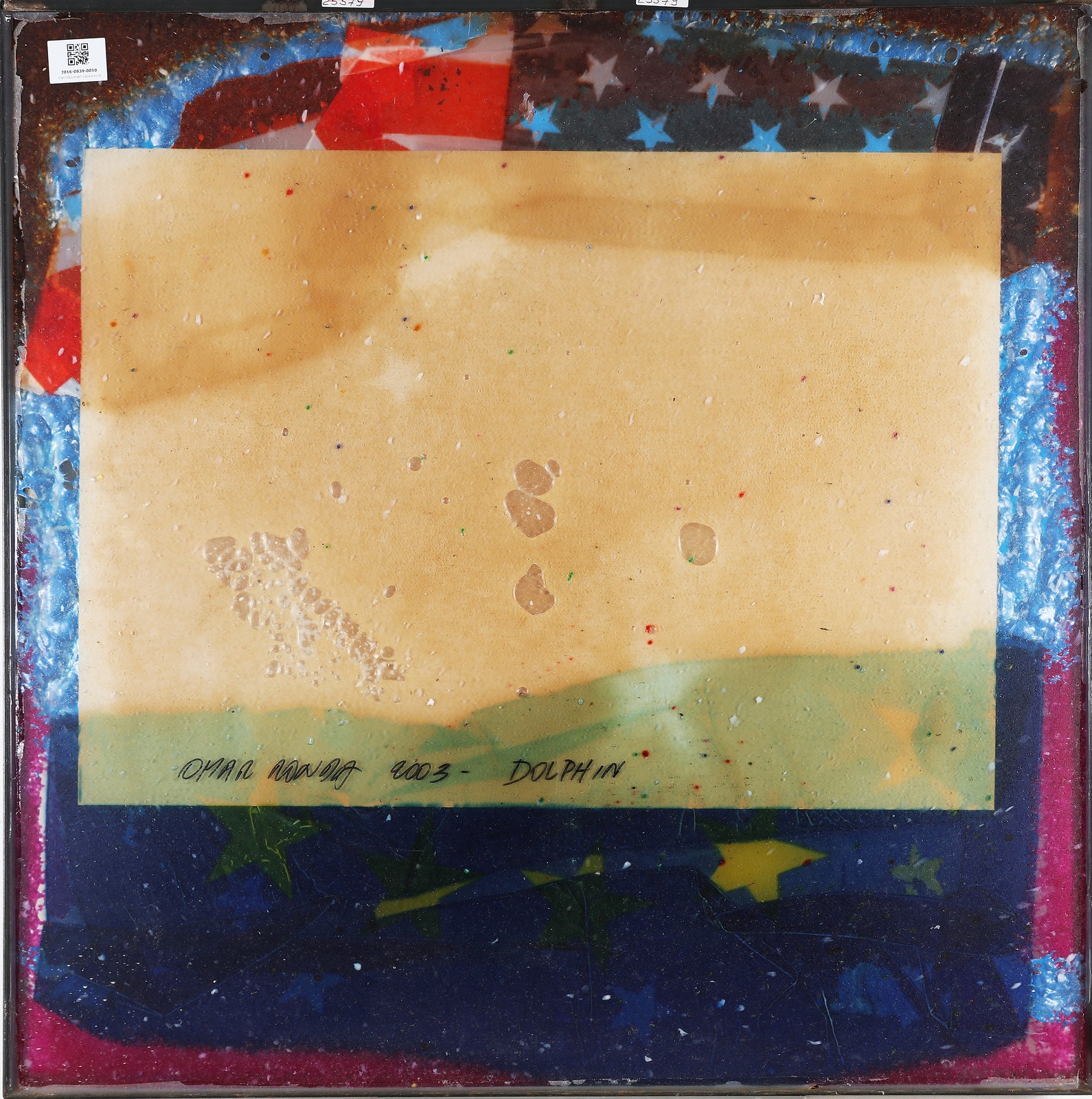 RONDA OMAR (n. 1947) Dolphin. . 2003. Plastica. Cm 100,00 x 100,00. Al retro titolo, firma e anno. Autentica dell'artista su fotografia.