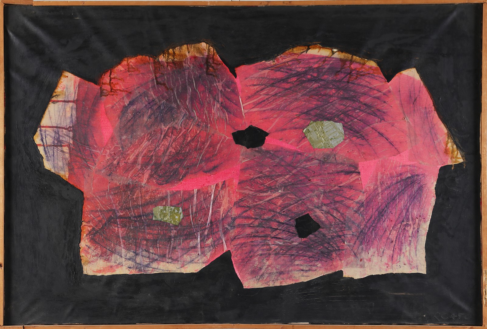 TURCATO GIULIO (1912 - 1995) Skin. Mixed media and collage on canvas. Cm 90,00 x 60,00. Mid 60s. Signature lower right. Giulio Turcato Archives, Rome, authenticity ceertificate on photo. Inventory number at the back.. Cornice presente
