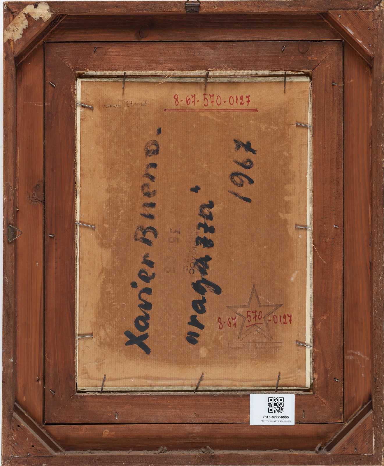 BUENO XAVIER (1915 - 1979) Ragazza. 1967. Olio su cartone telato. Cm 30,00 x 40,00. Firma in alto a sinistra. Al retro firma, titolo, anno e timbro a cura della Galleria d'Arte moderna Arte Duomo, Firenze. Autentica su fotografia di Raffaele Bueno. Cornice presente