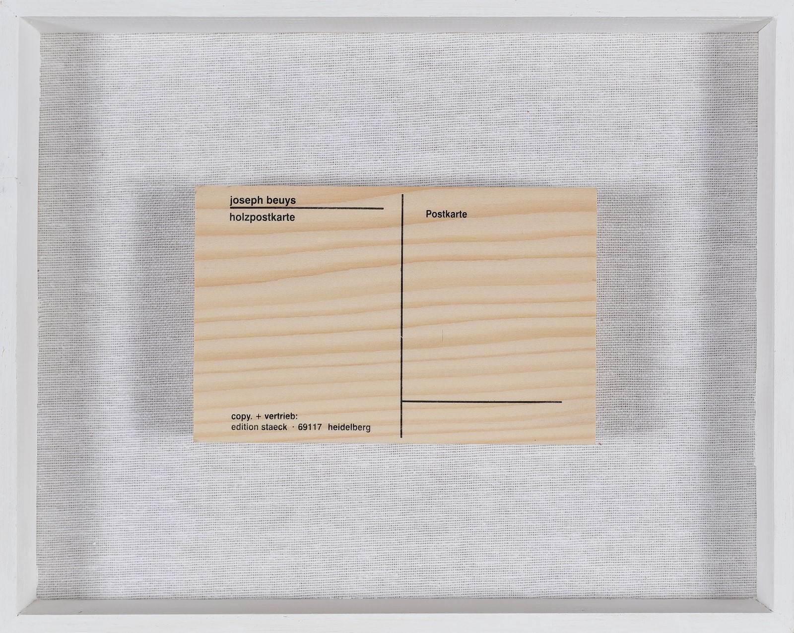 BEUYS JOSEPH (1921 - 1986) Postkarte. 1974. Serigrafia su legno.. Cm 15,00 x 10,50 x 3,30. . Cornice presente
