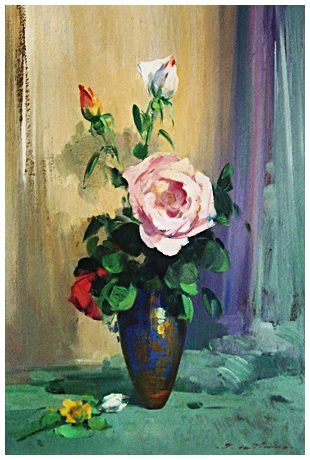 GIULIO DA VICCHIO Vicchio di Mugello 1925 – Livorno 2004 Rose Olio su tela 60 x 40. Firma in b. a d.; sul verso num. archivio, titolo, località e firma. B.A.: 350
