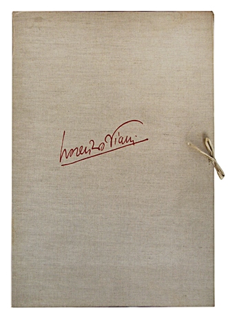LORENZO VIANI Viareggio 1882 – Lido di Ostia 1936 Lorenzo Viani – Dieci xilografie originali 1962 Cartella di 10 opere “Lorenzo Viani – Dieci xilografie originali” a cura della Saletta d’arte Dantesca, Torino, 1962, con prefazione di Angelo Dragone. Le xilografie sono state tirate dai legni originali intagliati dall’artista e pubblicate con il consenso della signora Mila Vivaldi Viani in occasione della mostra di disegni del padre, curata da Mario Fogola nella Saletta Dantesca a Torino. Tiratura: 100 es. num. arabi + 12 es. fuori commercio contrassegnati dalle lettere alfabetiche da A ad N. Stampatore: Stabilimento grafico Impronta, Torino. Cartella contenitrice originale telata con nastro di chiusura e alette interne. La partecipazione all’acquisto dell’edizione completa, avrà precedenza sulle offerte dei singoli lotti. B.A.: 750