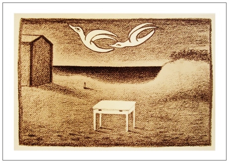 GIUSEPPE VIVIANI Agnano Pisano 1898 – Pisa 1965 Tavolo e uccelli 1964 Litografia a 3 colori. Firma e data in b. a d. + timbro a secco Tarde sed tuto. (56,6 x 76,5 foglio – 41,4 x 61,3 lito.) Editori: Vanni Scheiwiller, Milano – Paolo Belforte, Livorno. Tiratura: 170 es. su carta Arches. Pubbl.: “Giuseppe Viviani Catalogo Generale” a cura di Silvio Guarasci Pisa, Editore Saletta d’Arte Viviani s.a.s. Pisa, Stampatore Pacini S.p.a. Pisa, ottobre 2015, p.32. B.A.: A OFFERTA
