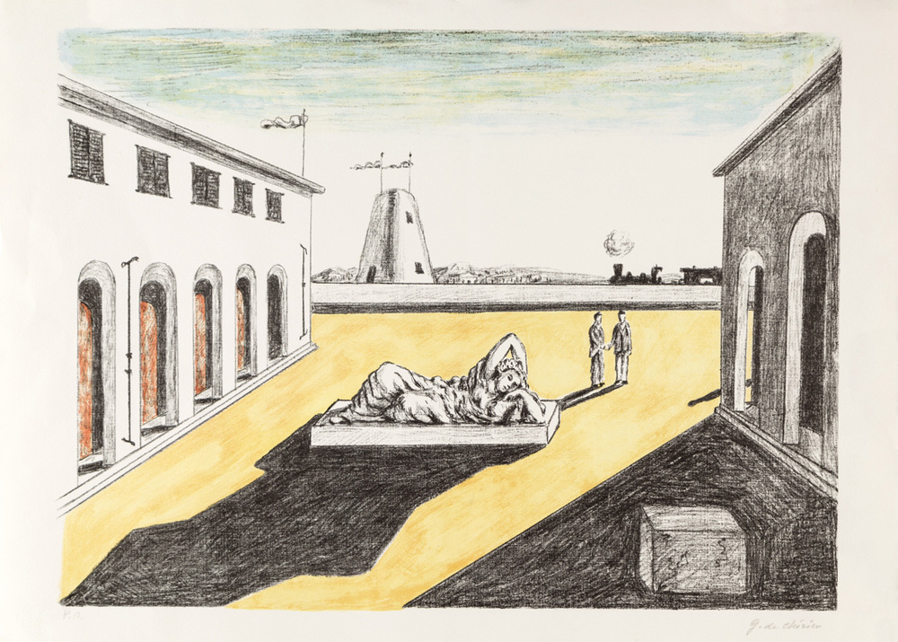 Giorgio De Chirico PIAZZA D'ITALIA - Piazza d'italia, 1969 Litografia a 5 colori, cm 50,5x70 Firmato in basso a destra "G. De Chirico", numerato in basso a sinistra P.A. La tiratura è stata realizzata in: 90 esemplari numerati da 1/90 a 90/9020 esemplari numerati da I/XX a XX/XX25 esemplari su Japon numerati da I/XXV a XXV/XXV21 esemplari siglati dalle lettere da A a Z12 prove d'ArtistaBibl.: Roma (Ott.-Nov.) 1971; Kamakura/Tokyo/Kyoto/Nagoya 1973-1974; L. Piccioni - A. Jouffroy, Messina 1980; D. Guzzi, Tivoli, 1984; C. Siniscalco (a cura di), Villongo 1984; M. Fagiolo, Bologna 1984; M. Calvesi - M. Fagiolo - F. Quarantotto, Caserta 1985; M. Fagiolo - G. Dalla Chiesa, Ferrara 1985; A. De Paz, Bologna 1985; G. Grassi, Bologna 1986; F. Simongini - A. De Angelis, Roma 1989; F. Ulivi, Ischia 1989, Policoro 1990..