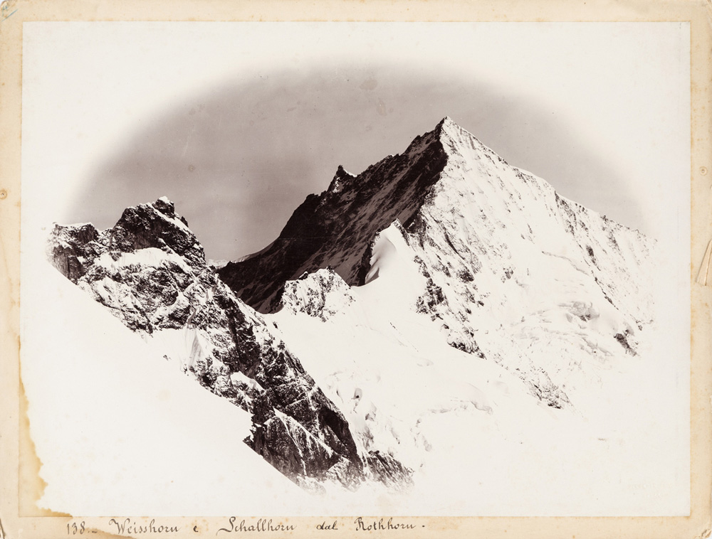 Vittorio Sella WEISSHORN,SCHALLHORN DALLA CRESTA NEVOSA DEL ROTHORN, 4000 M CA. - Stampa con aristotipo su carta, cm 32x42 foglio (cm 29x39,5 foto). Timbro "Vittorio Sella Biella" in basso a destra. Opera realizzata l'8 Agosto del 1883. Certificato di autenticità rilasciato dalla Fondazione Sella Onlus, Biella