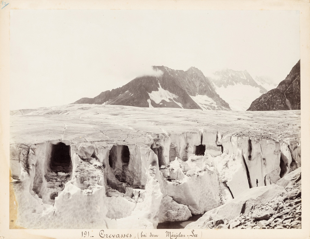 Vittorio Sella LAGO E FRATTURE DEL GHIACCIAIO DI ALETSCH ATTORNO AL LAGO MARJELEN - Stampa con aristotipo su carta, cm 31,5x41 foglio (cm 28,5x38,5 foto). Timbro "Vittorio Sella Biella" in basso a destra. Opera realizzata il 22 Luglio del 1884. Certificato di autenticità rilasciato dalla Fondazione Sella Onlus, Biella