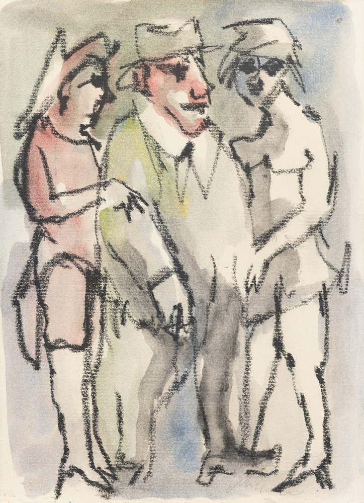 Mino Maccari SENZA TITOLO - Tecnica mista su cartone telato, Firmato in basso a destra "Maccari", Timbro al retro della galleria "Il Marguttino".