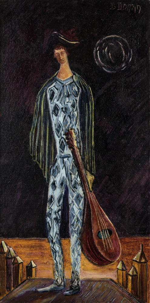Pittore del XX secolo SUONATORE DI MANDOLINO - Olio su tela, cm 80x40, Firmato in alto a destra "B. Doran".