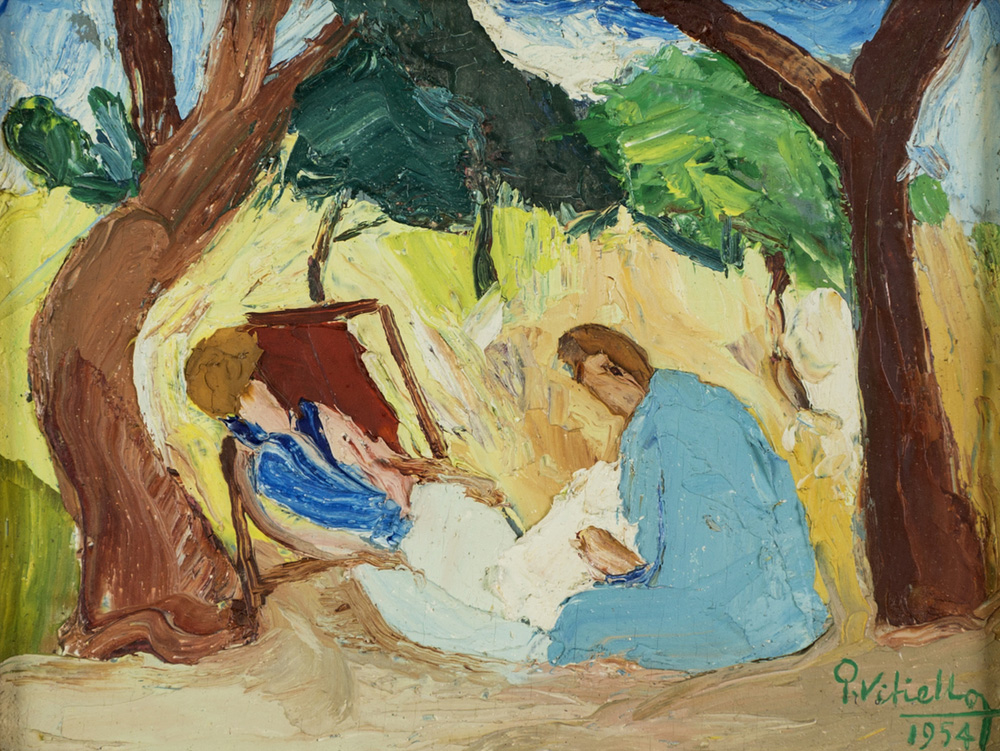 Pasquale Vitiello SENZA TITOLO - Olio su tavola, cm 17x22, Firma e data in basso a destra "P.Vitiello 1954".
