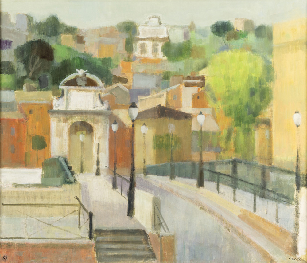 Lot 174 | Fernando Troso PIAZZA TRILUSSA - Olio su tela, cm 60x70.