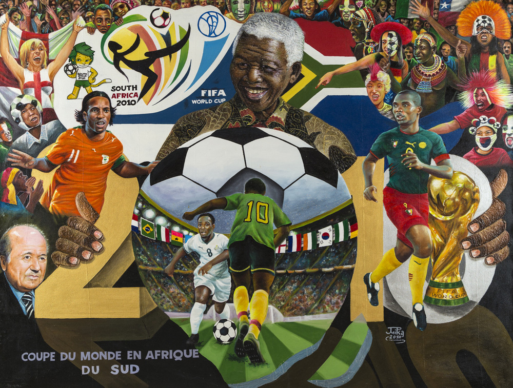 JP Mika NELSON MANDELA - Olio su tela, cm 100,5x131, Firma e data "JP Mika 2010". Opera esposta nella mostra "L'Africa e la sua ombra, Museo Arte Contemporanea Marta Massaioli, Fabriano, 2015".