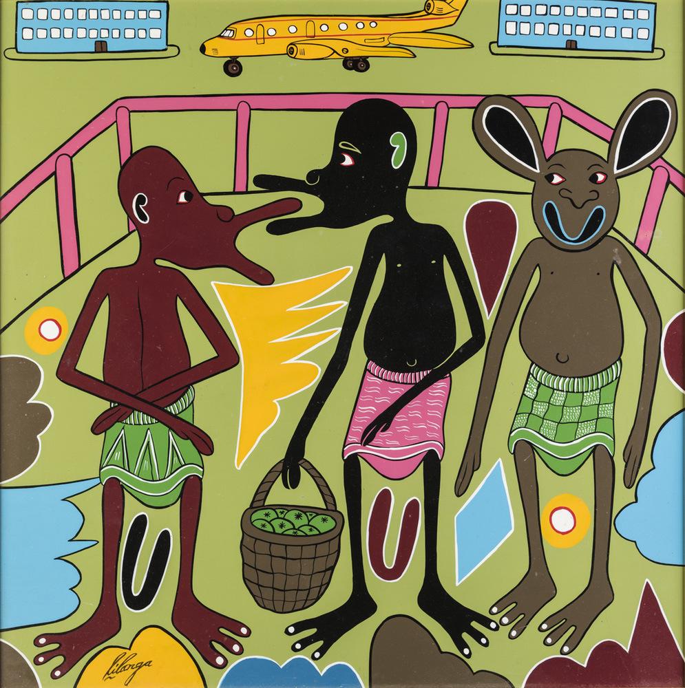 George Lilanga SENZA TITOLO - Tecnica mista su masonite, cm 61,5x61,5 , Firma "Lilanga" in basso a sinistra. "Opera esposta nella mostra "L'Africa e la sua ombra, Museo Arte Contemporanea Marta Massaioli, Fabriano, 2015".