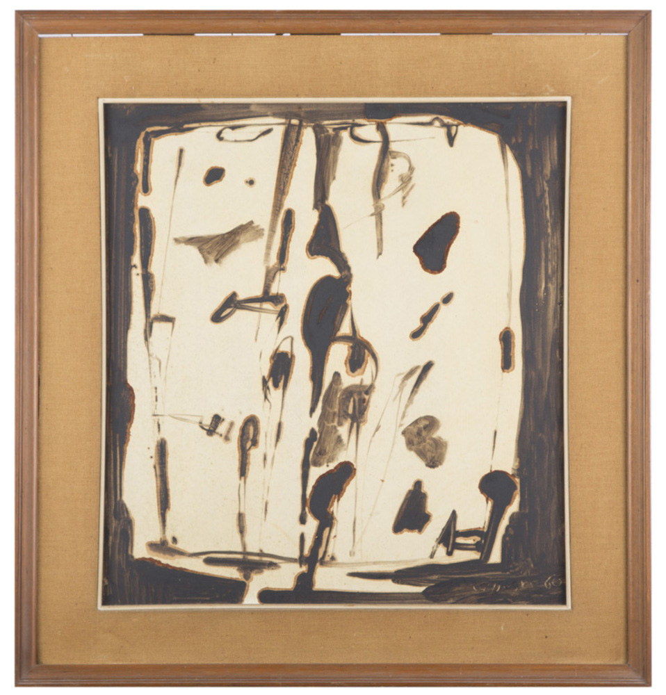 Pietro Consagra FONDO MARRONE (UN'IMMAGINE) - Olio e bitume su faesite, cm 42,5x39,8 Firmato e datato in basso a destra "Consagra '60", Certificato di autenticità rilasciato dall'Archivio Consagra, Milano.