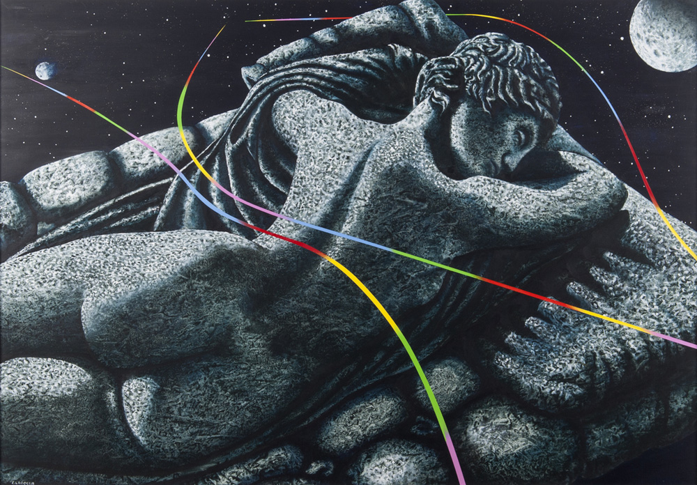 Vincenzo Larocca CIVILTÀ PERDUTE - Olio su tela, cm 70x100 Firma, data e titolo sul retro.