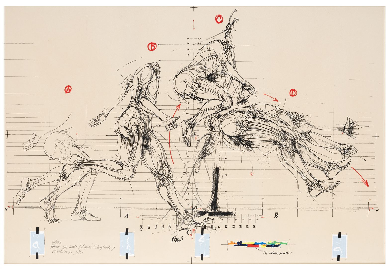 VLADIMIR VELICKOVIC Belgrado 1935 Human qui saulte 1974 Litografia ex 16/150...