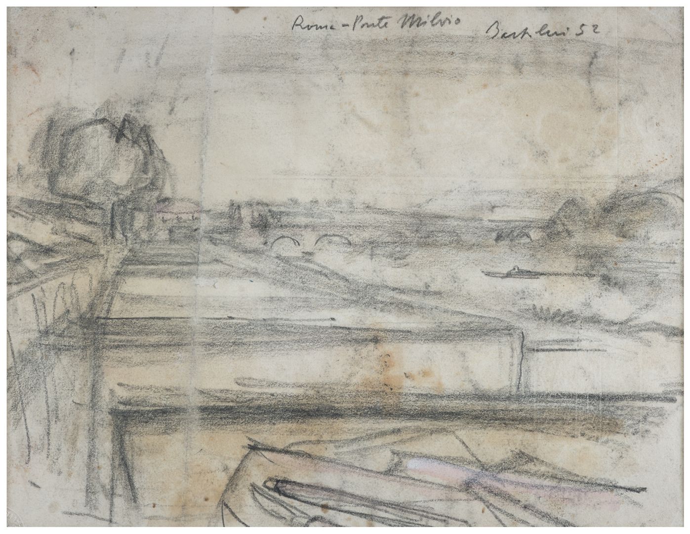 LUIGI BARTOLINI Cupramontana 1892 - Roma 1963 Ponte Milvio 1952 Matita su...