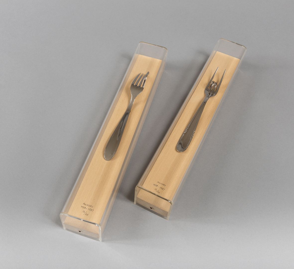BRUNO MUNARI Milano 1907 - 1998 Coppia di forchette in acciaio Senza Titolo...