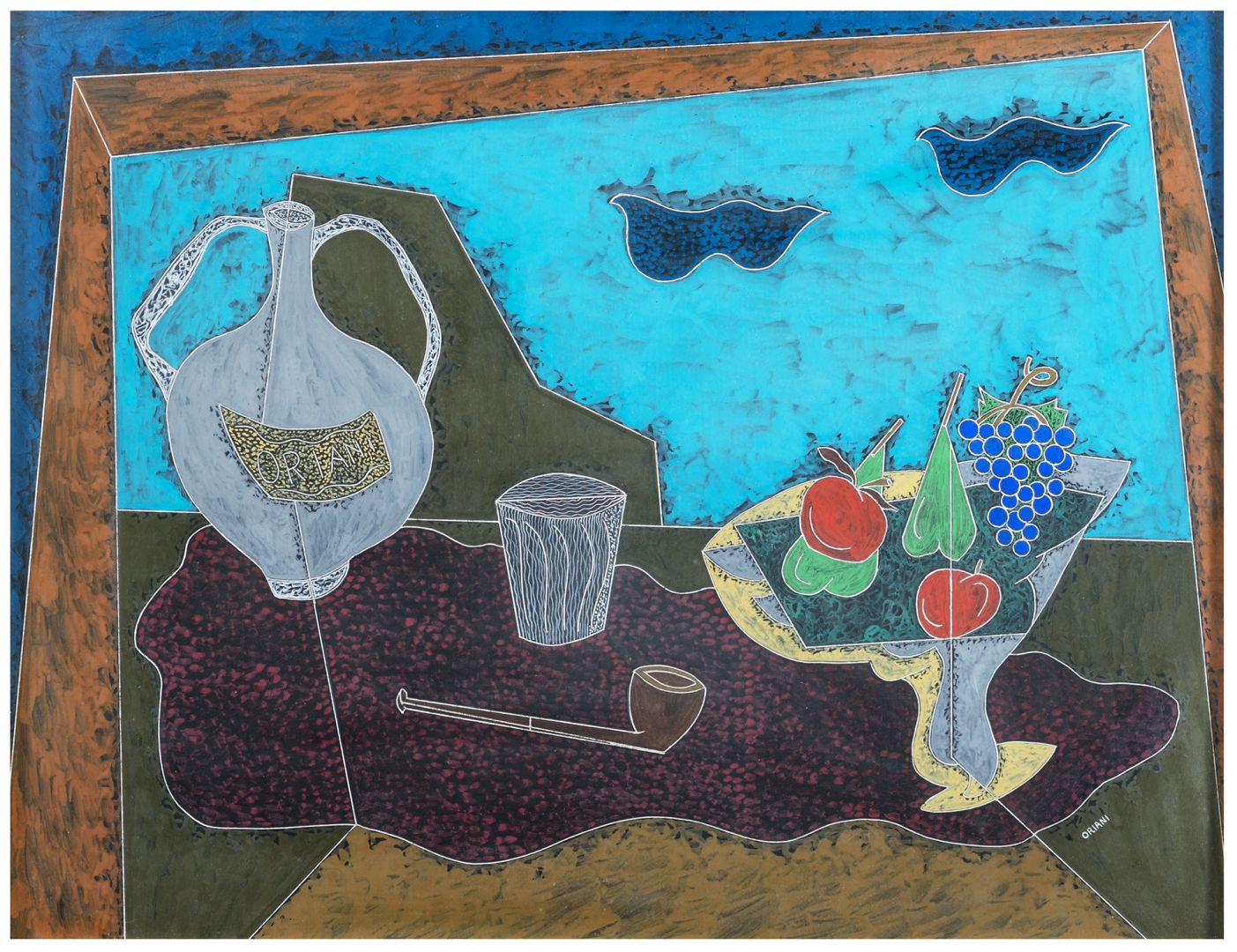 PIPPO ORIANI Torino 1909 - Roma 1972 Natura morta con frutta Encausto su...