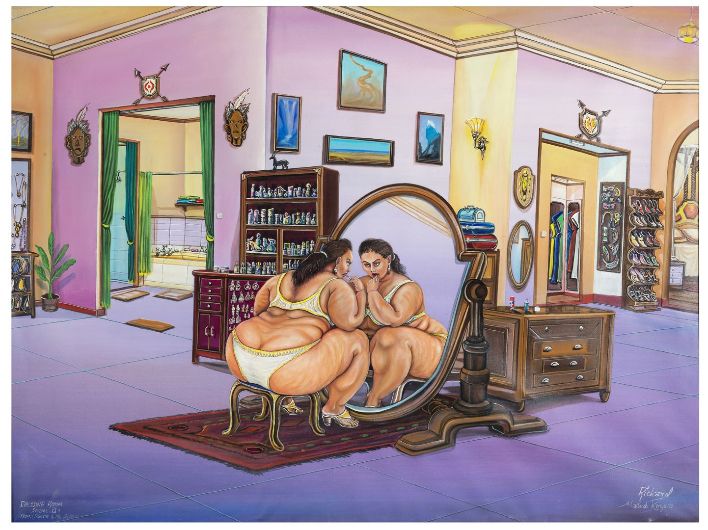 RICHARD ONYANGO Kenya 1960 Drewsy al trucco Malindi 2009 Olio su tela cm 120...