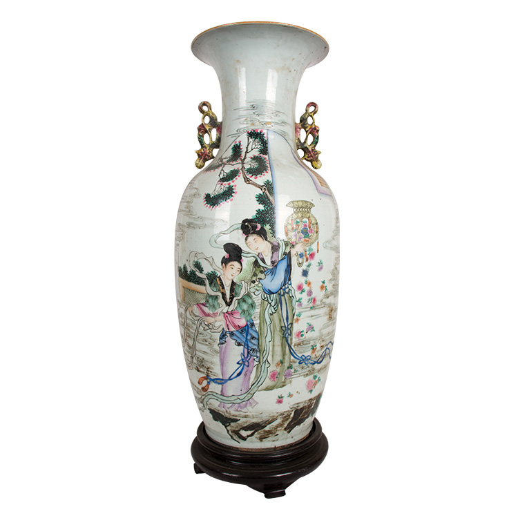 Coppia di vasi: A Vaso in stile orientale; B Vaso in stile orientale. XX sec. A: Vaso in porcellana; h: 57 cm (con base 62 cm); B: Vaso in porcellana; h: 57 cm (con base 62 cm)
