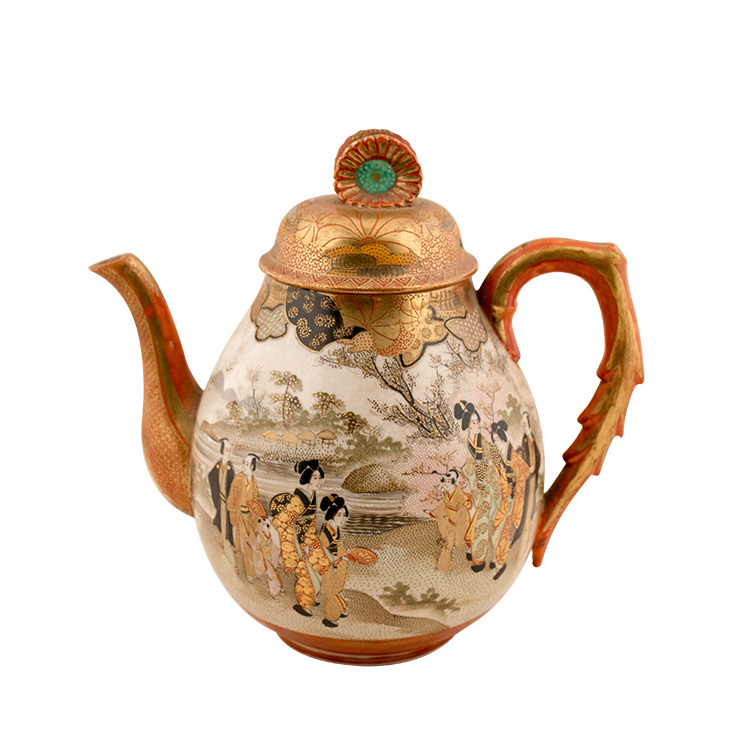 Teiera giapponese con figure dedite all'Hanami Porcellana dipinta; 17,5 x 19...