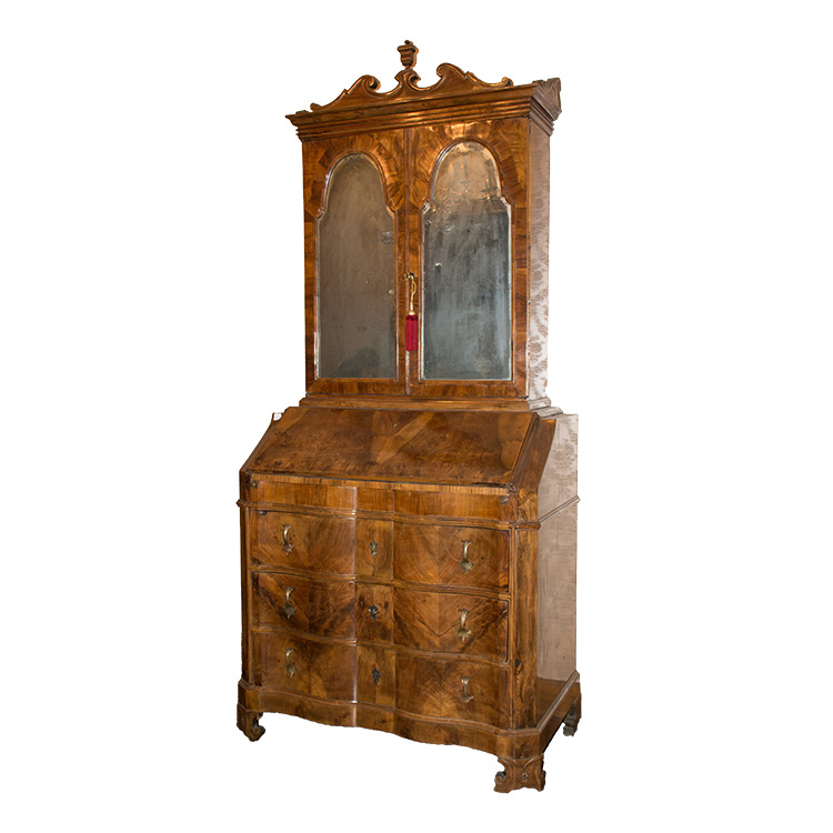 Trumeau a ribalta lastronato. XX sec. 213 x 100 x 54 cm senza apertura; con apertura profondità 81 cm.