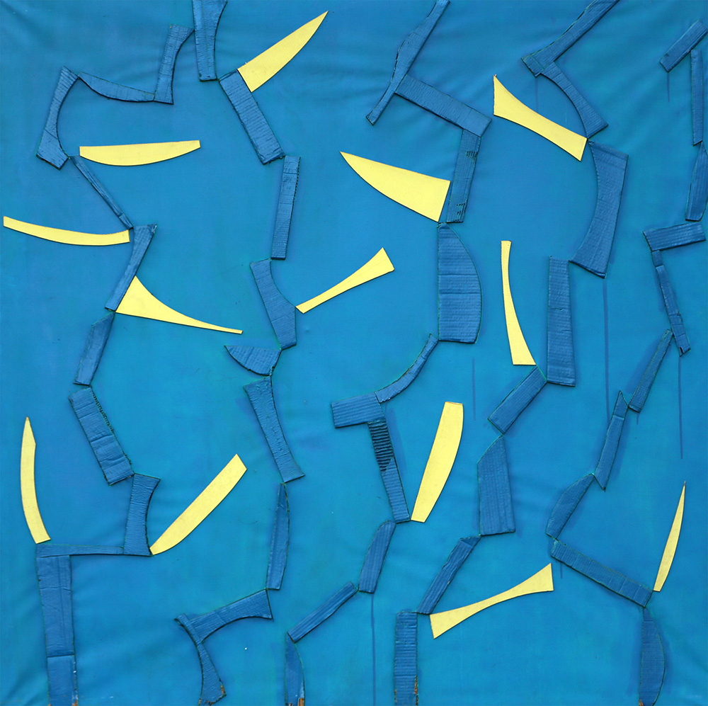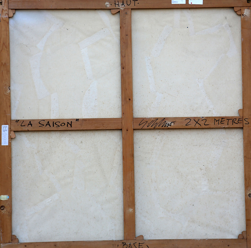 SERGIO DANGELO 1932 La saison, anni '70 Tecnica mista e collage su tela, cm. 200 x 200 Firmato sul retro Etichetta Galleria Il Chiostro, Saronno sul retro Prov. Collezione Privata