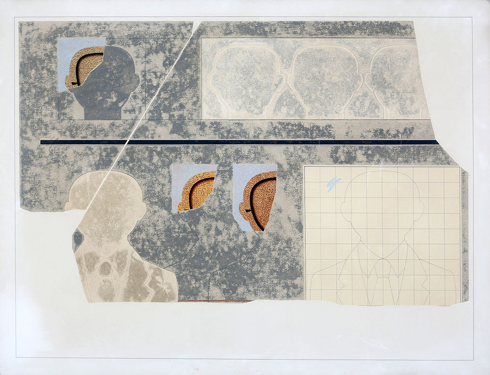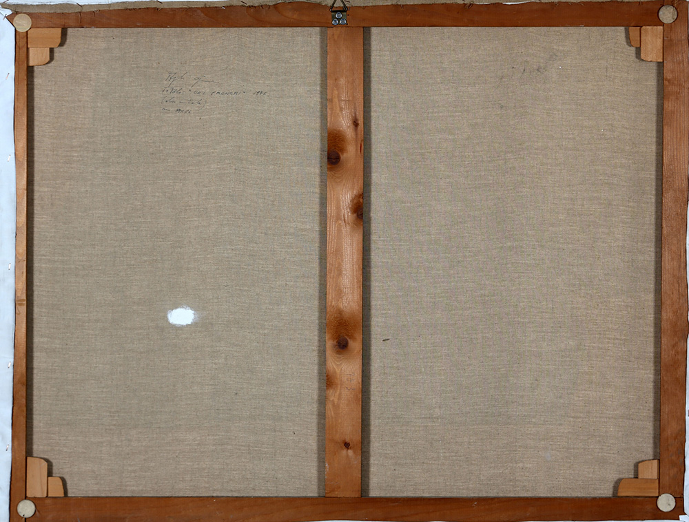 ANGELO CAGNONE 1941 Dei Pronomi, 1976 Olio e collage su tela, cm. 88 x 116 Firmato, datato e titolato sul retro Prov. Collezione Privata