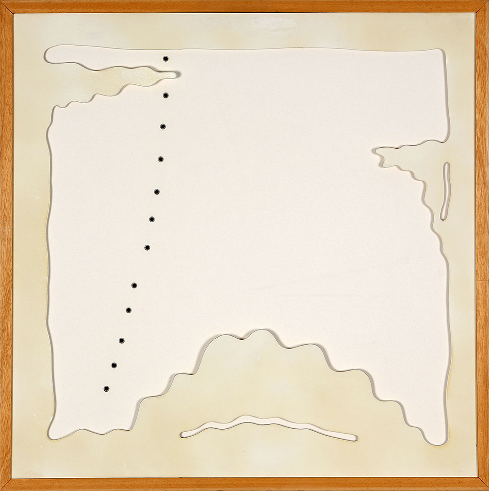 LUCIO FONTANA 1899 - 1968 Concetto Spaziale, Teatrino Bianco, 1968 Quattro fogli di cartone ritagliati ed incollati, cm. 70 x 70 Firmato sul retro Opera n. 29/75 Edizione Plus, Baden - Baden, 1968 Prov. Collezione Privata