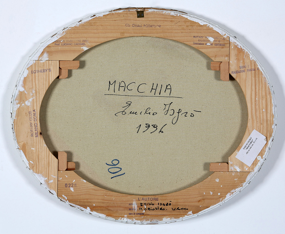 EMILIO ISGRO' 1937 Macchia, 1996 Tecnica mista su tela, cm. 45 x 55 Firmato e datato sul retro Timbro Sotheby’s sul retro Timbro Ovali Rotariani a cura di Luciano Caramel sul retro Prov. Collezione Privata