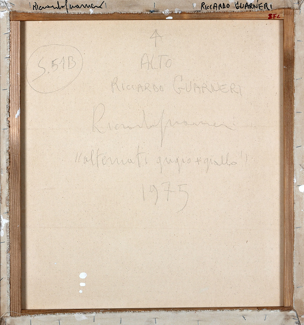 RICCARDO GUARNERI 1933 Alternati grigio + giallo, 1975 Tecnica mista su tela, cm. 65 x 60 Firmato e datato sul retro Prov. Collezione Privata