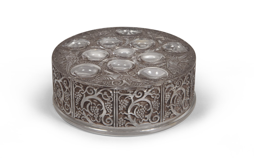 SCATOLA LALIQUE, 1926 ca. in cristallo smaltato modello 'Roger' decorata con animali e rami stilizzati.