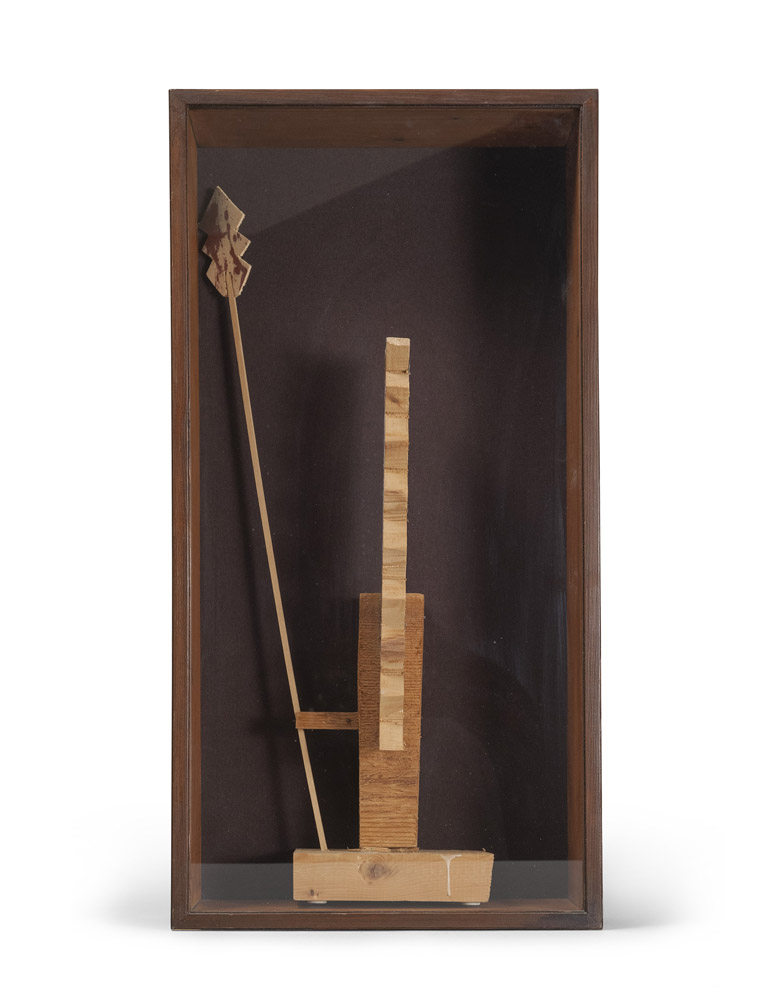 Lot 391 | ENRICO BAJ (Milano 1924 - Vergiate 2003) Guerriero Scultura in legno, cm. 77...