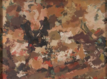 VINCENZO PETRILLO (Roma 1932 - 2003) Vaso con fiori, 1958 Olio su tela, cm....