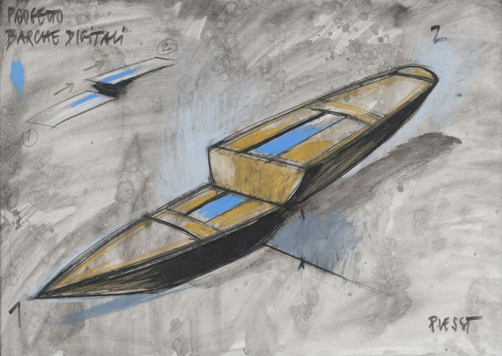 FABRIZIO PLESSI (Reggio Emilia 1940) Progetto barche digitali Tecnica mista...