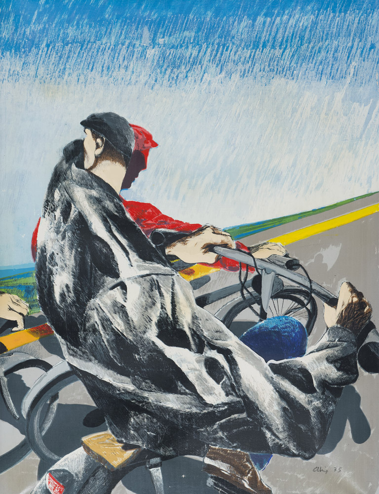 ENNIO CALABRIA (Tripoli 1937) Uomini in bicicletta, 1975 Acrilico su tela,...
