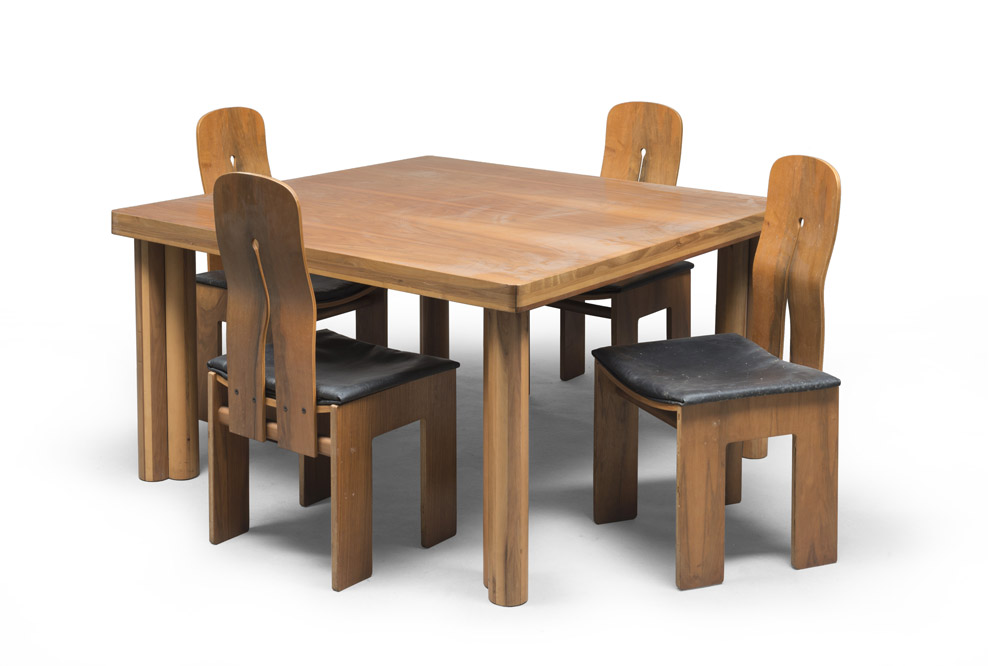 CARLO SCARPA (Venezia 1906 - Giappone 1978) Tavolo con quattro sedie con...