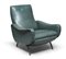 Poltrona reclinabile con poggiapiedi in pelle verde.