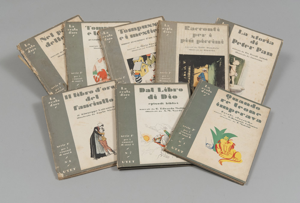 Otto volumi de La Scala d'Oro dal 1944 al 1945. SERIE I° per i ragazzi di anni 6. Utet edizioni. Discrete condizioni, alcuni dei volumi presentano delle cadute alla costa.
