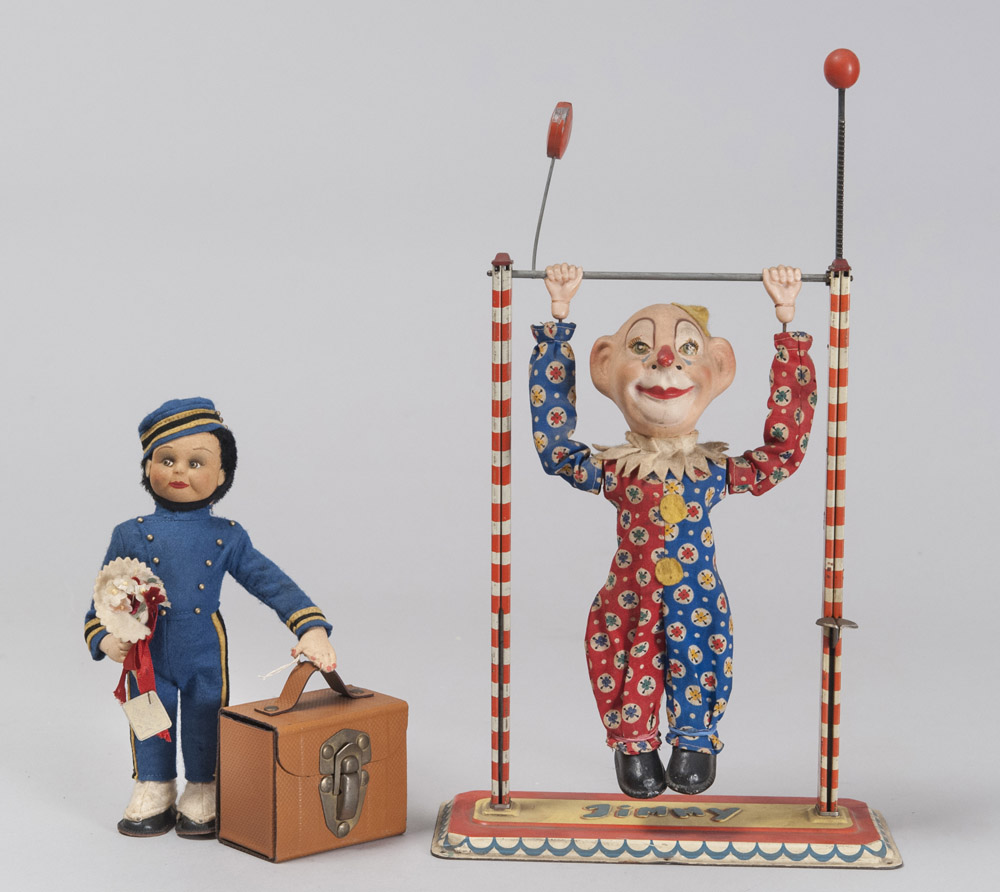 composto da un pupazzo portavaligie e un pagliaccio Jimmy siglato 'Arnold - made in western Germany'.
