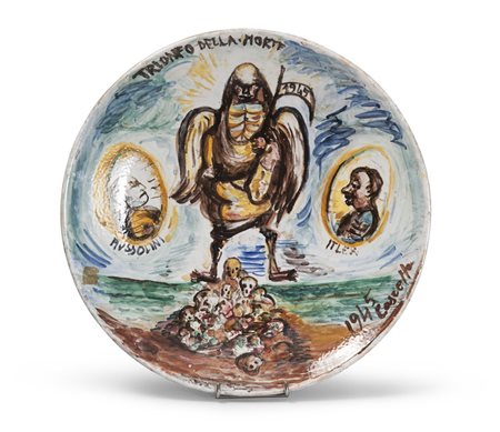 Lot 492 | PIATTO IN CERAMICA DIPINTO A MANO, 1945 raffigurante il 'Trionfo della...