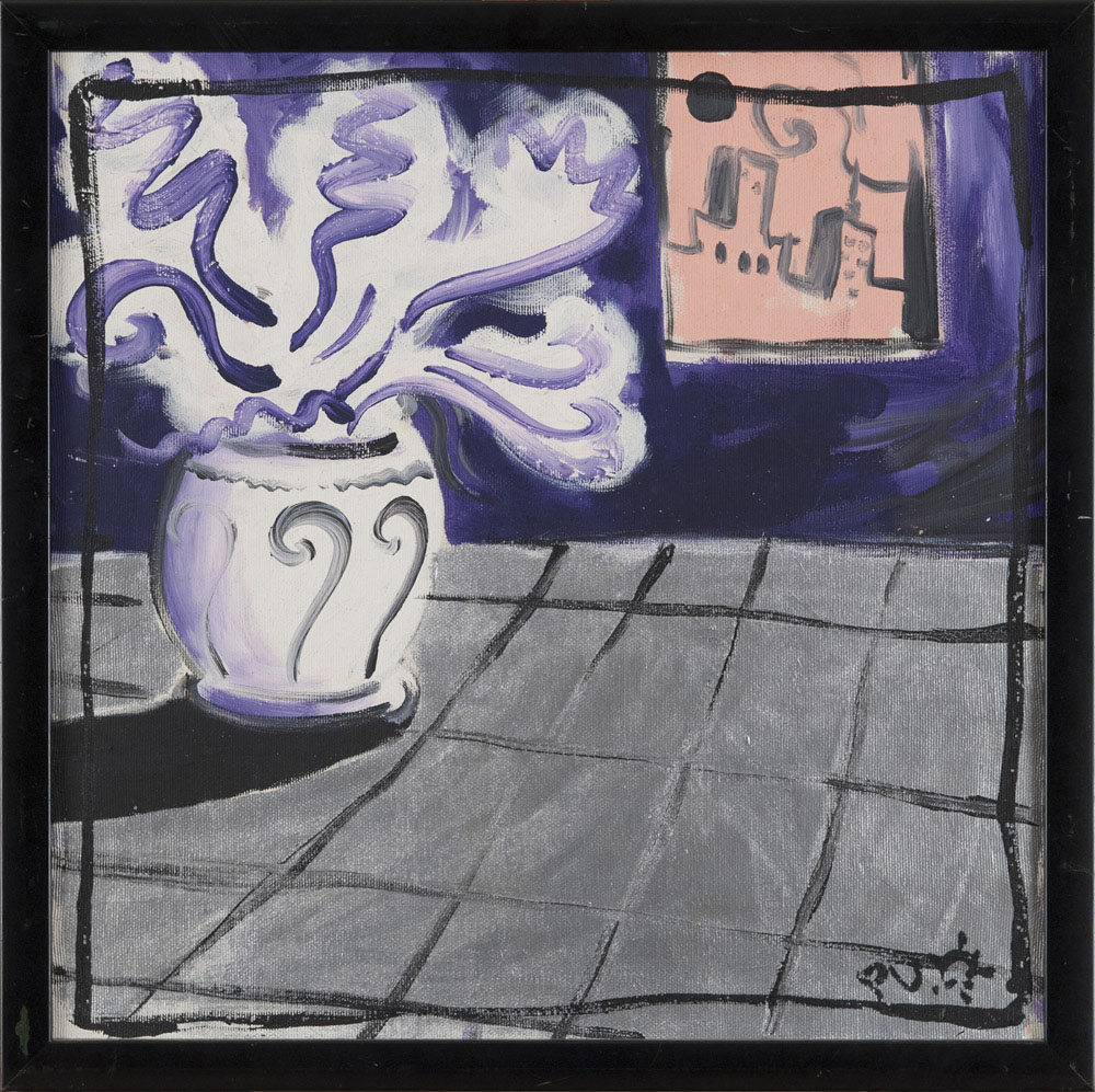PITTORE XX SECOLO Vaso in interno Tecnica mista su tela, cm. 40 x 40 Firma...